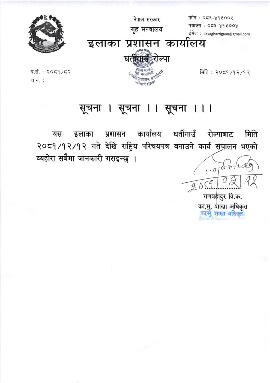 इलाका प्रशासन कार्यालय, घर्तिगाँउ, रोल्पा